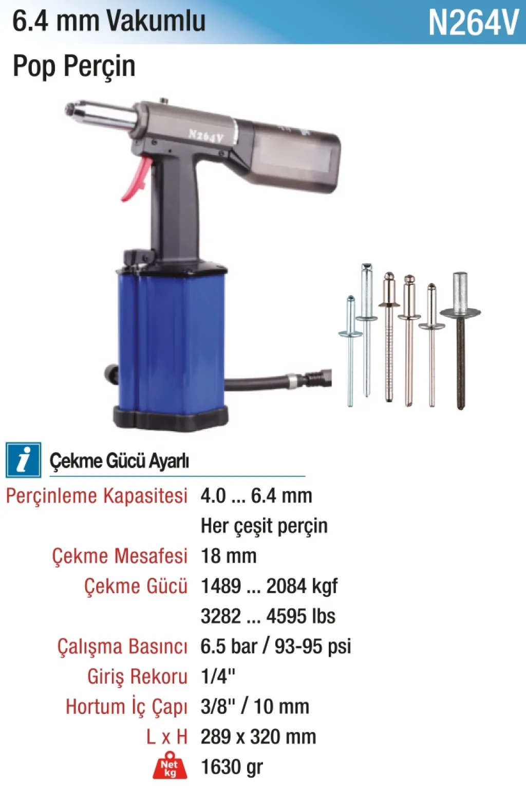 Güçlü ve dayanıklı yapısıyla öne çıkan 6.4 mm. Vakumlu Pop Perçin Pensi, işlerinizi hızlı ve kolay bir şekilde tamamlamanıza yardımcı olur. Kaliteli malzemeden üretilmiş olup uzun ömürlü kullanım imkanı sunar. İşlevsel tasarımı sayesinde her türlü perçin işlemi için ideal bir seçenektir.