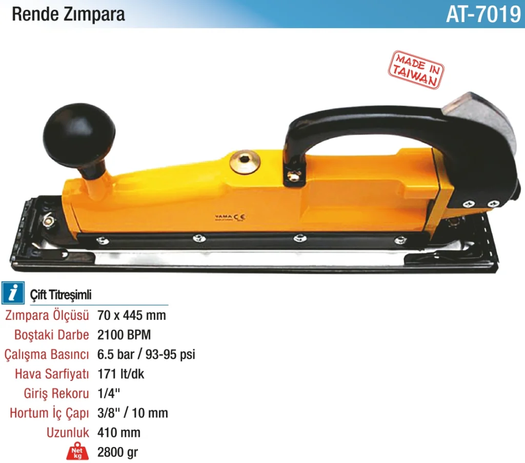 70 x 445 mm 2100 BMP Havalı Rende Zımpara, güçlü motoru ve yüksek hızda çalışma kapasitesi ile hızlı ve etkili zımparalama sağlar. 70 x 445 mm boyutundaki zımpara yüzeyi, geniş alanlarda verimli bir şekilde çalışmanıza olanak tanır. Metal, ahşap ve plastik gibi yüzeylerde mükemmel sonuçlar elde edebilirsiniz.