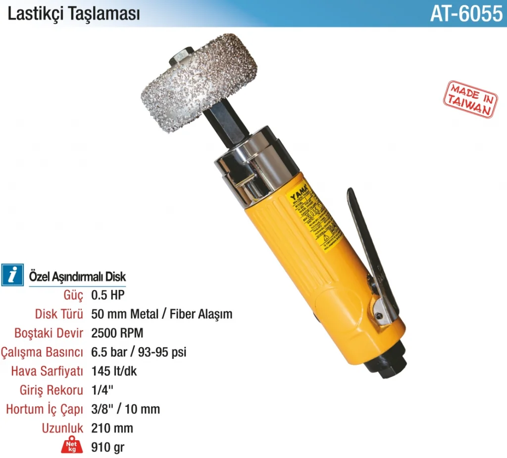 Ergonomik yapısı, uzun süreli kullanımlar için rahat bir tutuş sağlar. Düşük titreşim ve yüksek verimlilik ile çalışan bu taşlama aracı, lastik bakım sektöründe profesyonel kullanıcılar için ideal bir tercihtir.