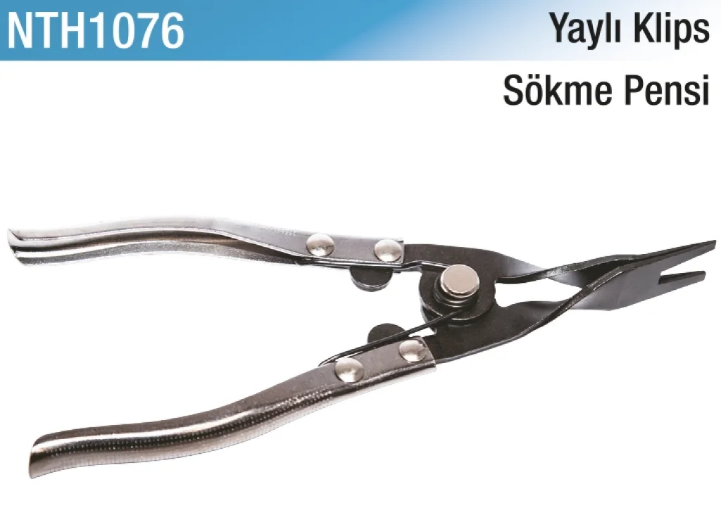 Yaylı-Klips Sökme Pensi, otomobil ve makinelerde yaylı klipslerin zarar görmeden çıkarılması için özel olarak tasarlanmıştır.